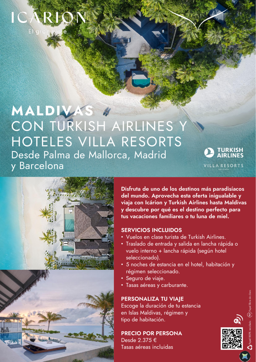 Maldivas con Turkish Airlines y hoteles Villa Resorts